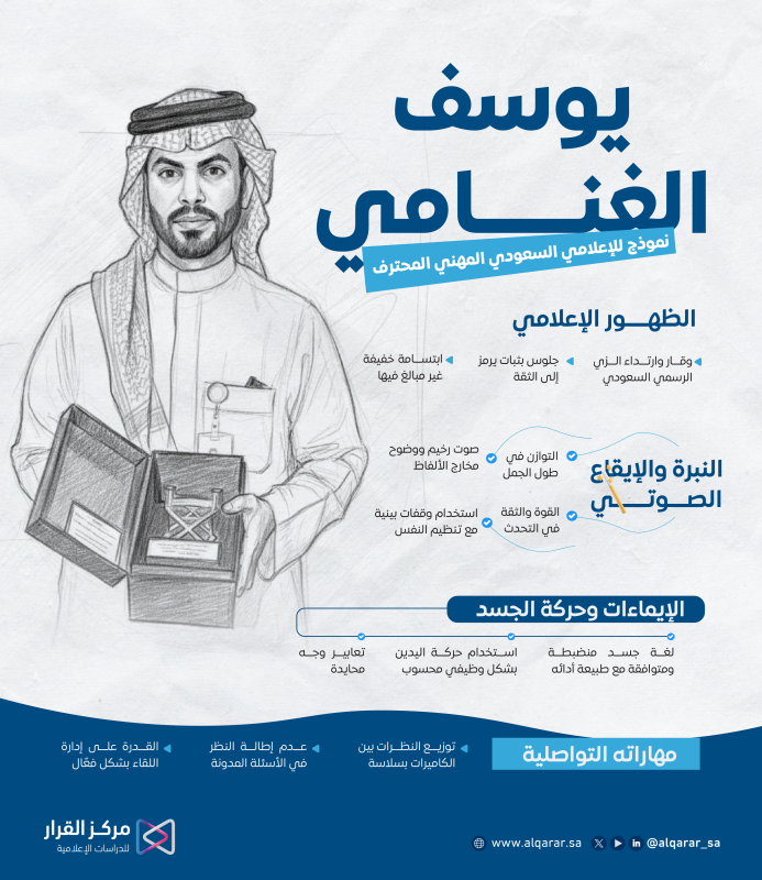 وانطلاقًا مما سبق، ونظرًا لحرص مركز القرار للدراسات الإعلامية على التعرض لمختلف عناصر العملية الإعلامية، فقد أجرى المركز تحليلًا سيميولوجيًا لأداء مقدم البرامج في مجموعة (mbc) يوسف الغنامي، وذلك بناءً على رصد ومتابعة عدد من لقاءاته الإعلامية بلغ (25) لقاءً.