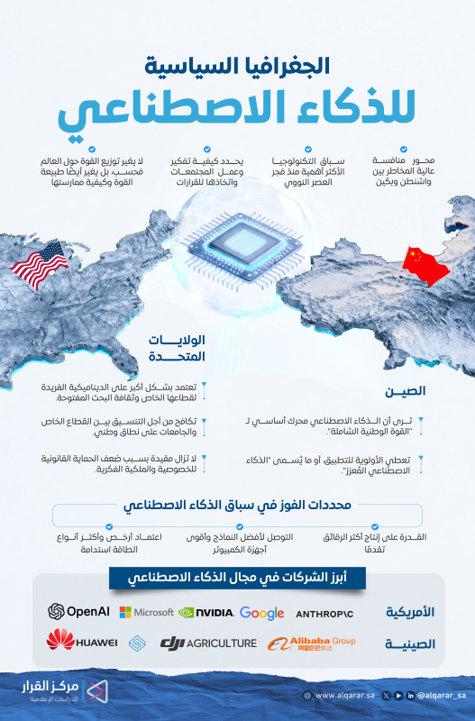 ووفقًا لتقرير نشره المجلس الأطلنطي، دخل العالم في سباق التكنولوجيا الأكثر أهمية منذ فجر العصر النووي، ولكن هذه المرة الأسلحة هي الخوارزميات وليس الذرات، فبدلًا من سباق للحصول على سلاح خارق واحد، فإن هذا السباق لتحديد كيفية تفكير وعمل المجتمعات واتخاذها للقرارات، فالذكاء الاصطناعي لا يغير توزيع القوة حول العالم فحسب، بل يغير أيضًا طبيعة تلك القوة وكيفية ممارستها، وفيما يلي نستعرض أبرز ما تضمنه التقرير: